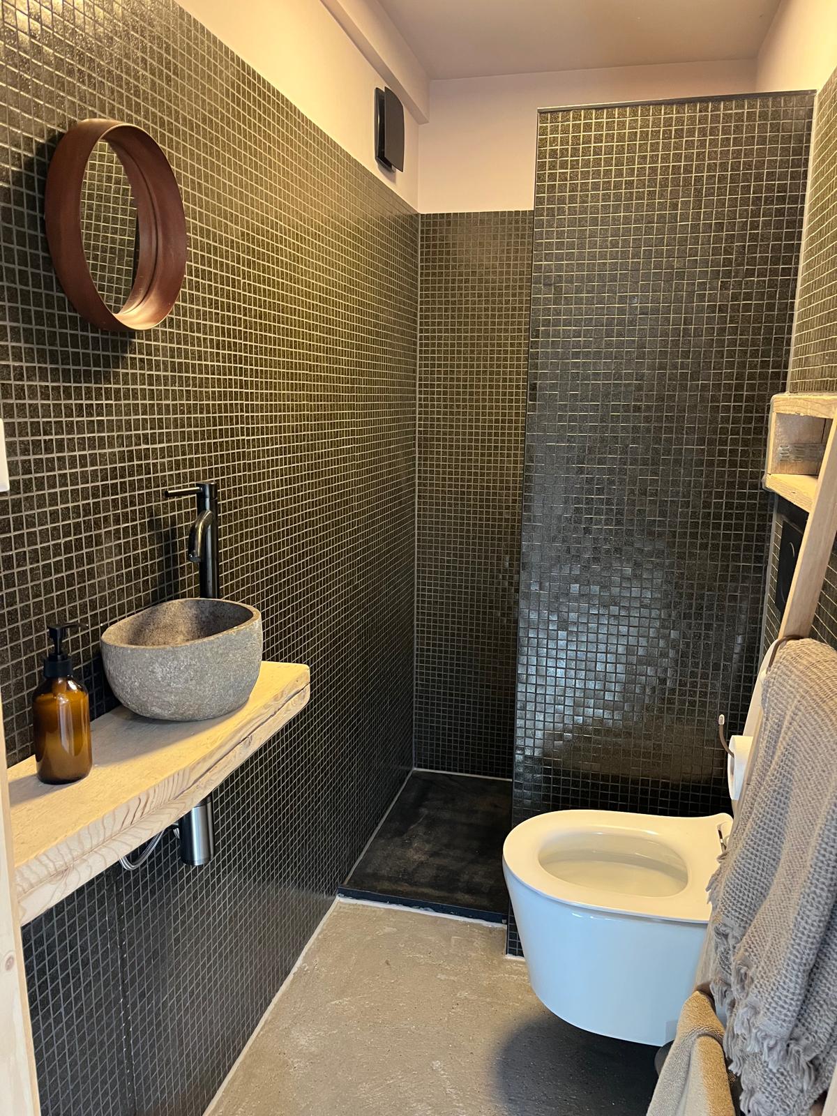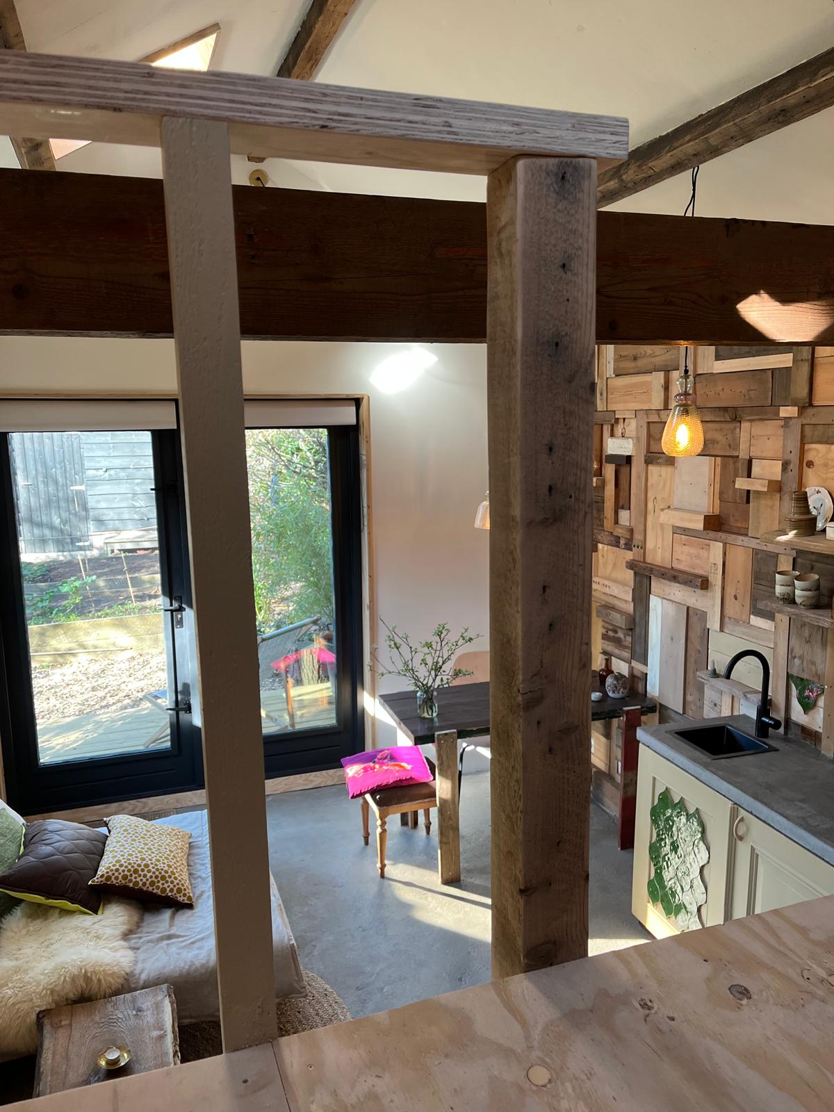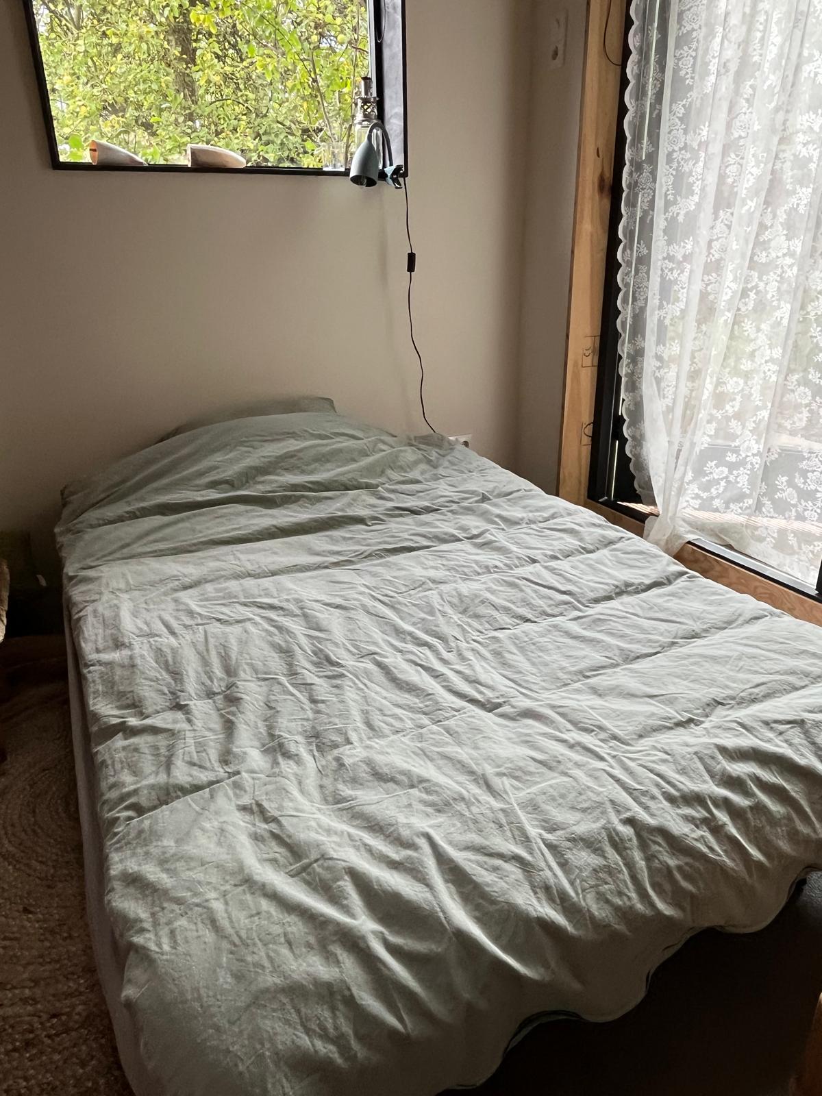 Het is een tiny house gelegen in onze weelderige achtertuin. Via een gangetje tussen de huizen heb je een eigen ingang en heel veeæ privacy. We hebben een sleutelkastje, zodat je er altijd in kan.