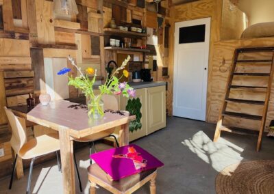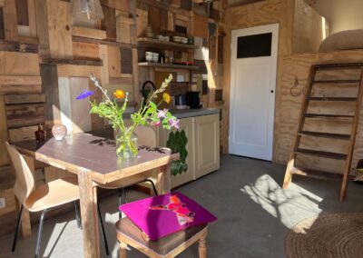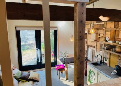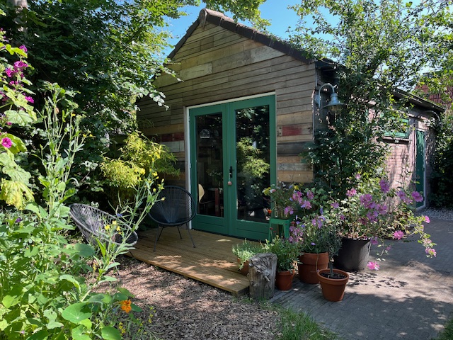Verscholen in een wilde tuin ligt dit unieke tuinhuisje, vlakbij de historische centrum van Deventer. Duurzaam gebouwd met hergebruikte materialen en sfeervol ingericht. Ideaal voor twee personen, met een slaapbank voor een derde persoon. Het tuinhuis heeft een eigen ingang, heeft veel privacy en er is ruimte voor twee fietsen.